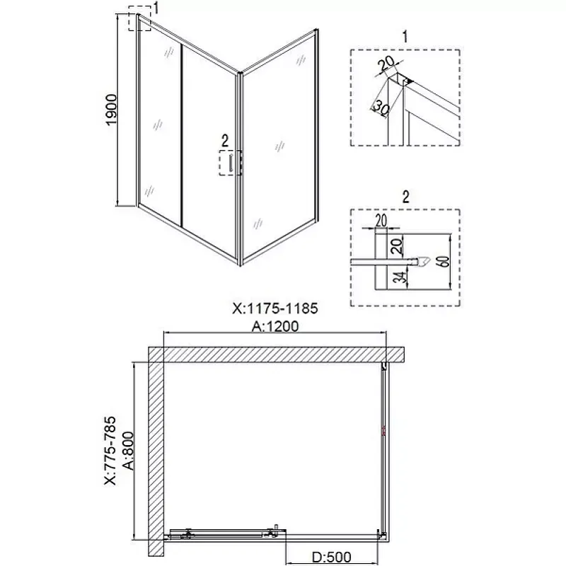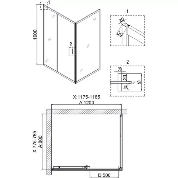 Душевой уголок Niagara Nova NG-6812-08 BLACK 120х80