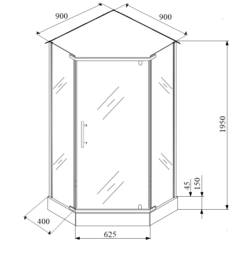 Каркас изготовлен из прочного закаленного стекла, что обеспечивает надёжность и долговечность конструкции. Поддон выполнен из высокопрочного ABS-пластика и имеет оптимальную высоту — 15 см. Это делает использование уголка удобным как для взрослых, так и для детей.