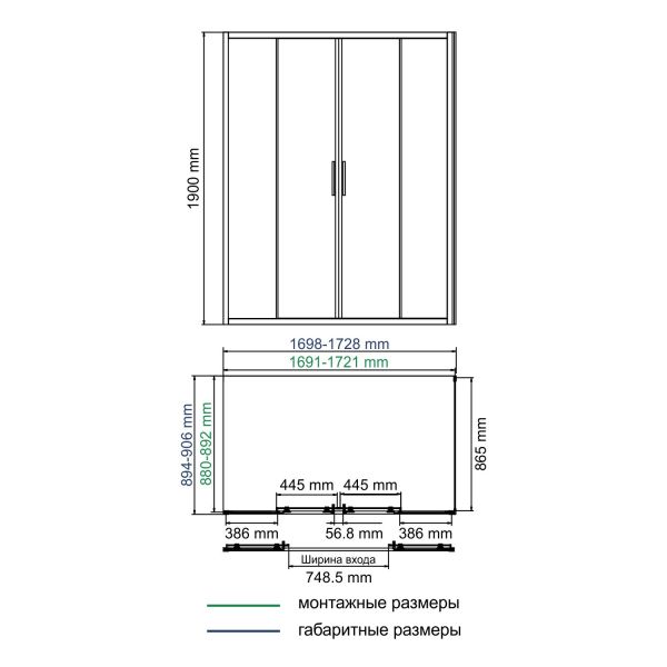 Душевой уголок Wasserkraft Lippe 45S 45S54 170х90 см хром