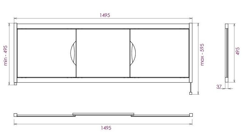 Ножки позволяют регулировать экран по высоте от 52 до 60 см, благодаря этому экран является универсальным и впишется в интерьер любой ванной комнаты.