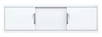 Конструкция имеет три подвижные раздвижные двери из МДФ, покрытых высокоглянцевой белой пленкой. Две боковые дверцы с врезными хромированными металлическими ручками.