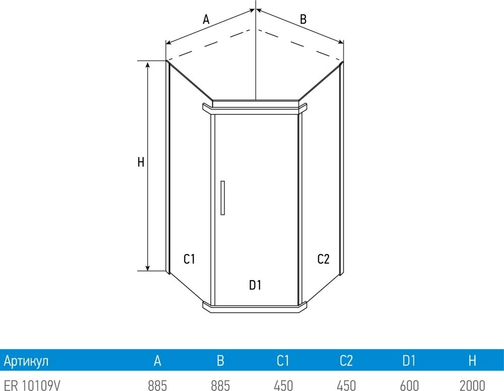 Erlit Comfort ER10109V-C1 90x90x200 Душевой уголок