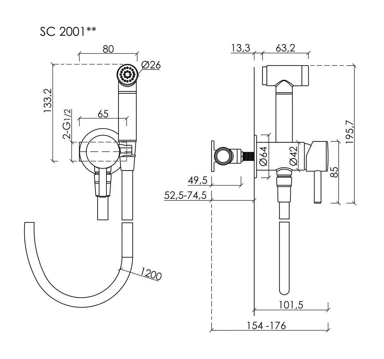 Гигиенический душ SANCOS Atom со смесителем, c внутренней частью, цвет хром глянцевый, встраиваемый, настенныйПолный комплект со смесителем