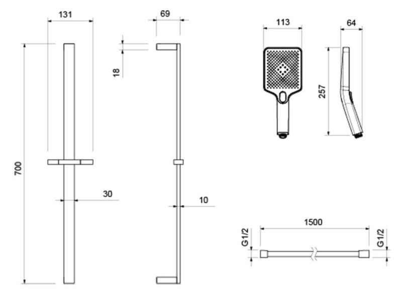 • Душевой гарнитур: душевая стойка, лейка, шланг