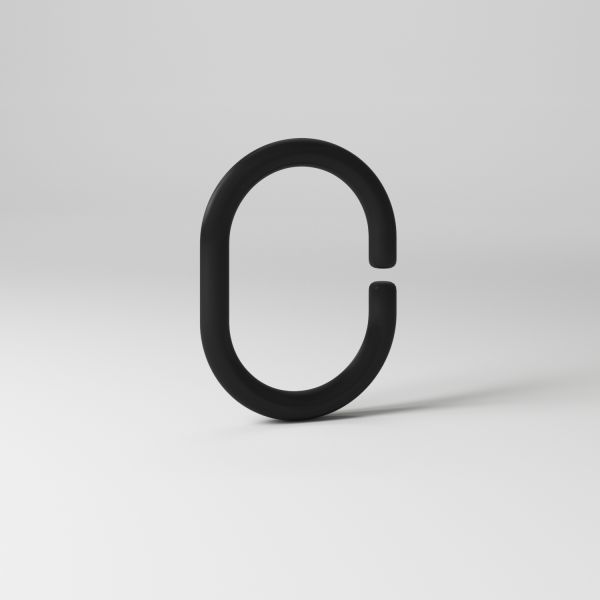 Набор колец для шторы в ванную комнату в форме буквы С. Кольца изготовлены из пластика стильного антрацитового цвета, благодаря чему подойдут как к темной шторе, так и к интерьеру в темных тонах. В комплекте 12 колец.