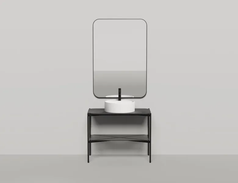 Консоль, предназначенная для установки накладных раковин из ассортимента Salini, изготовлена из металла, выполнена в благородном матовом чёрном цвете.