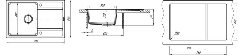 Мойка Липси 780 - это большая чаша (38 x 44 сантиметра) с увеличенным крылом, подойдет для любого кухонного гарнитура.