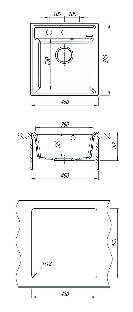 - Отверстия под смеситель:нет