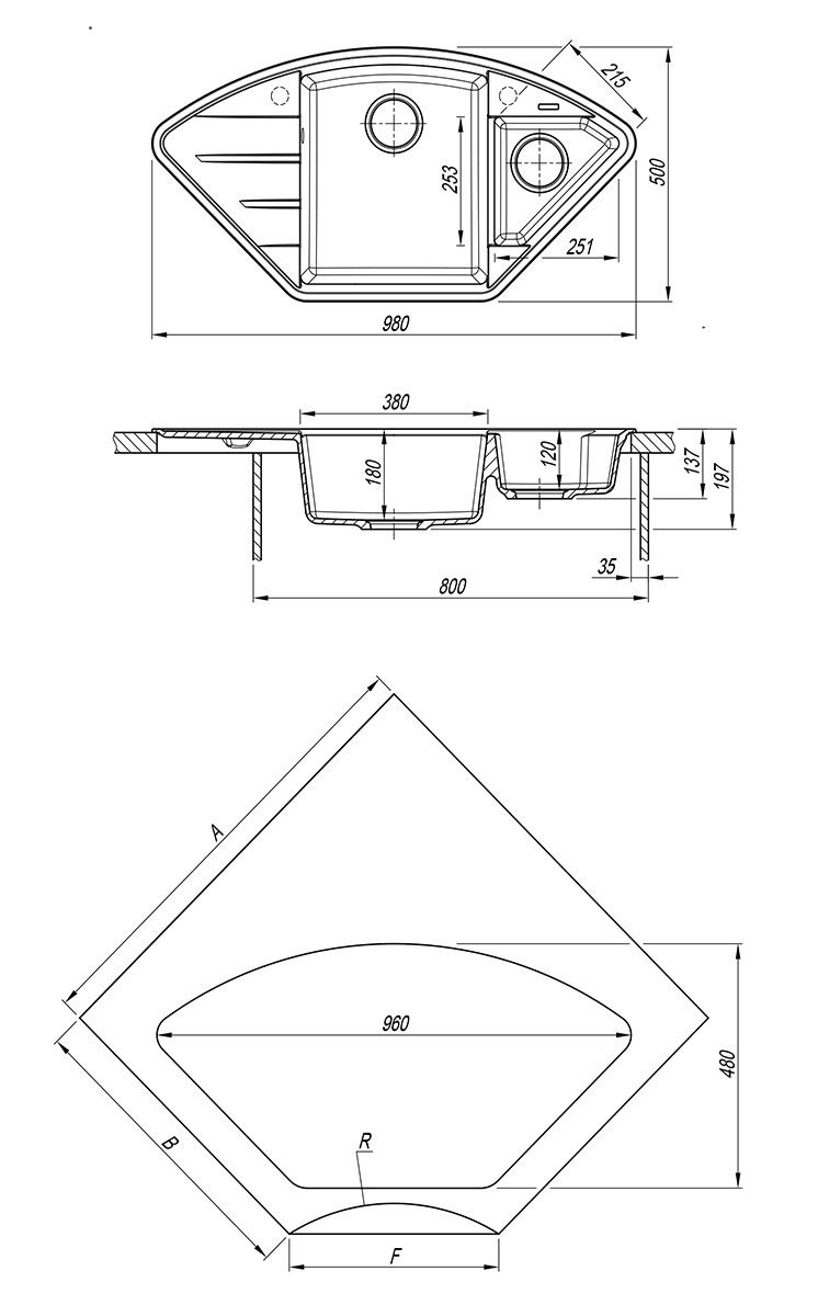 • Глубина чаш: 180 мм/120 мм