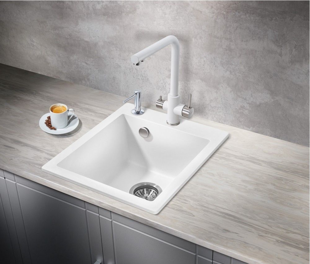 За мойкой легко ухаживать: благодаря непористому материалу жир и другие виды загрязнений не впитываются, а оставшиеся после мытья посуды пятна без проблем удаляются простыми чистящими средствами.