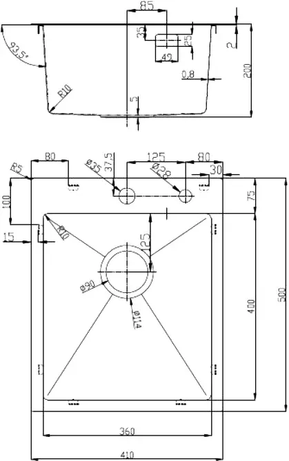 Толщина материала мойки, мм