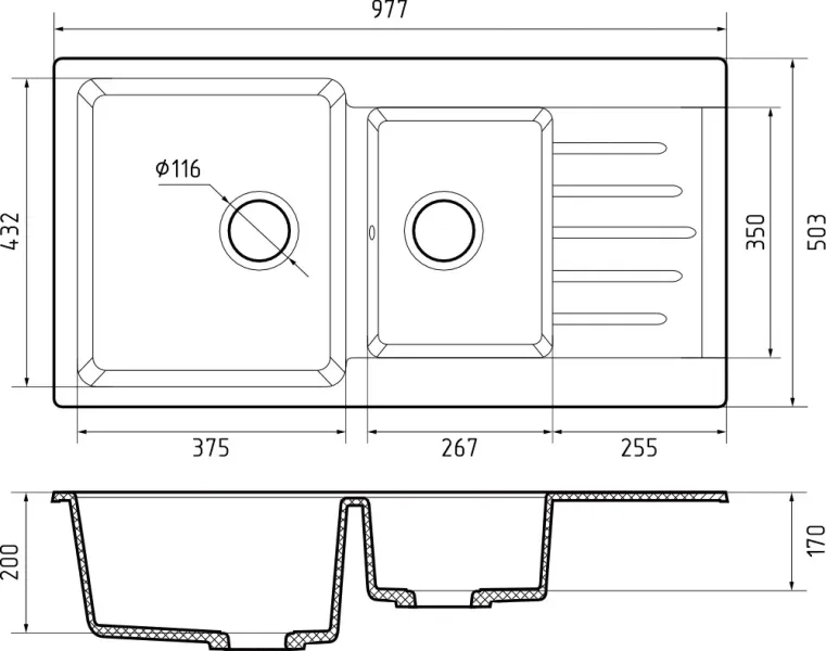 Общий размер: 977 * 503 мм