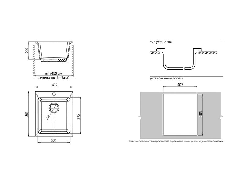 Установочный проем: 407х485 мм
