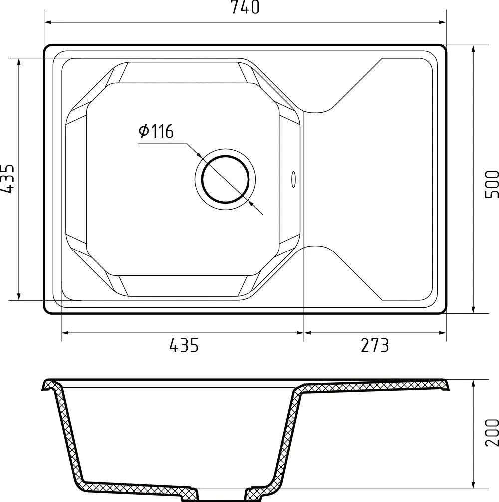 Мойка кухонная GranFest UNIQUE U-740L иней
