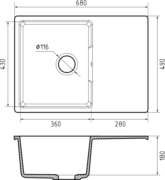 Комплектация: сливная арматура с корзинчатым вентилем (Ø 3.5""/90 мм), тех.паспорт, гарантийный талон."