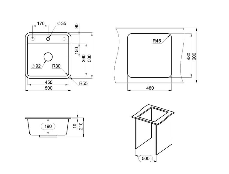 Мойка кухонная Granula Standart 5001, БАЗАЛЬТ Подробнее
