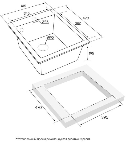 Материал мойки не нужно герметизировать, и, поскольку он не пористый, то он максимально устойчив к окрашиванию.Компактный размер