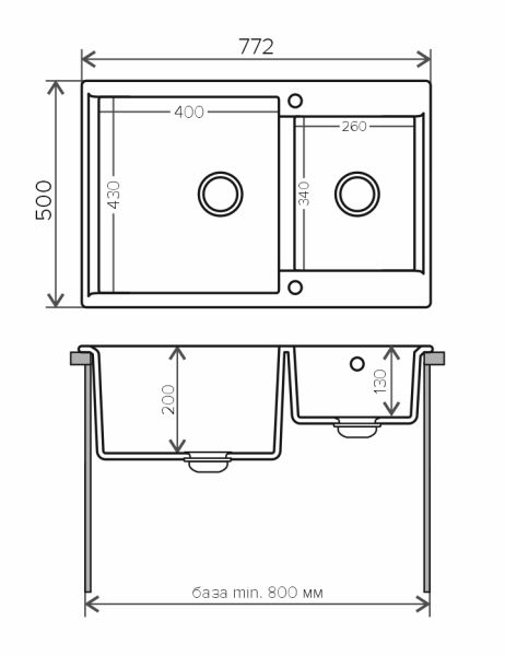 - Отверстия под смеситель:нет
