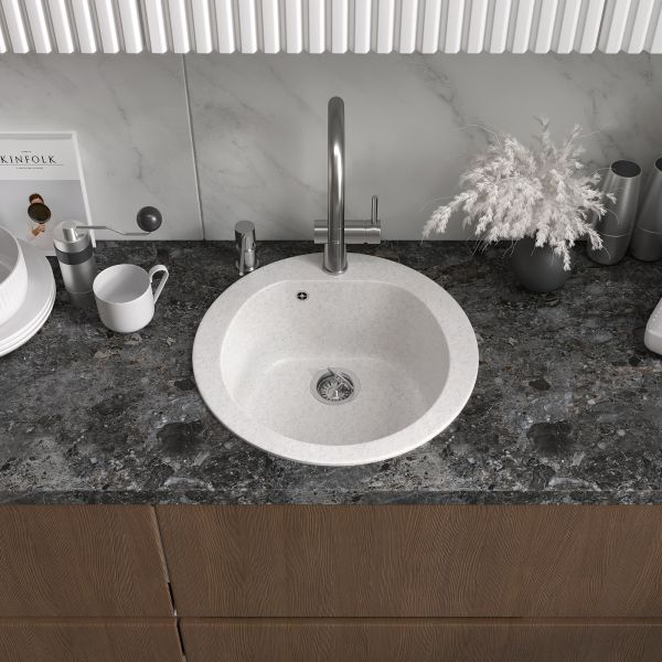В мойке предусмотрено отверстие для установки смесителя. Используя алмазную коронку, можно сделать дополнительные отверстия для дозатора жидкого мыла или сифона с полуавтоматом.