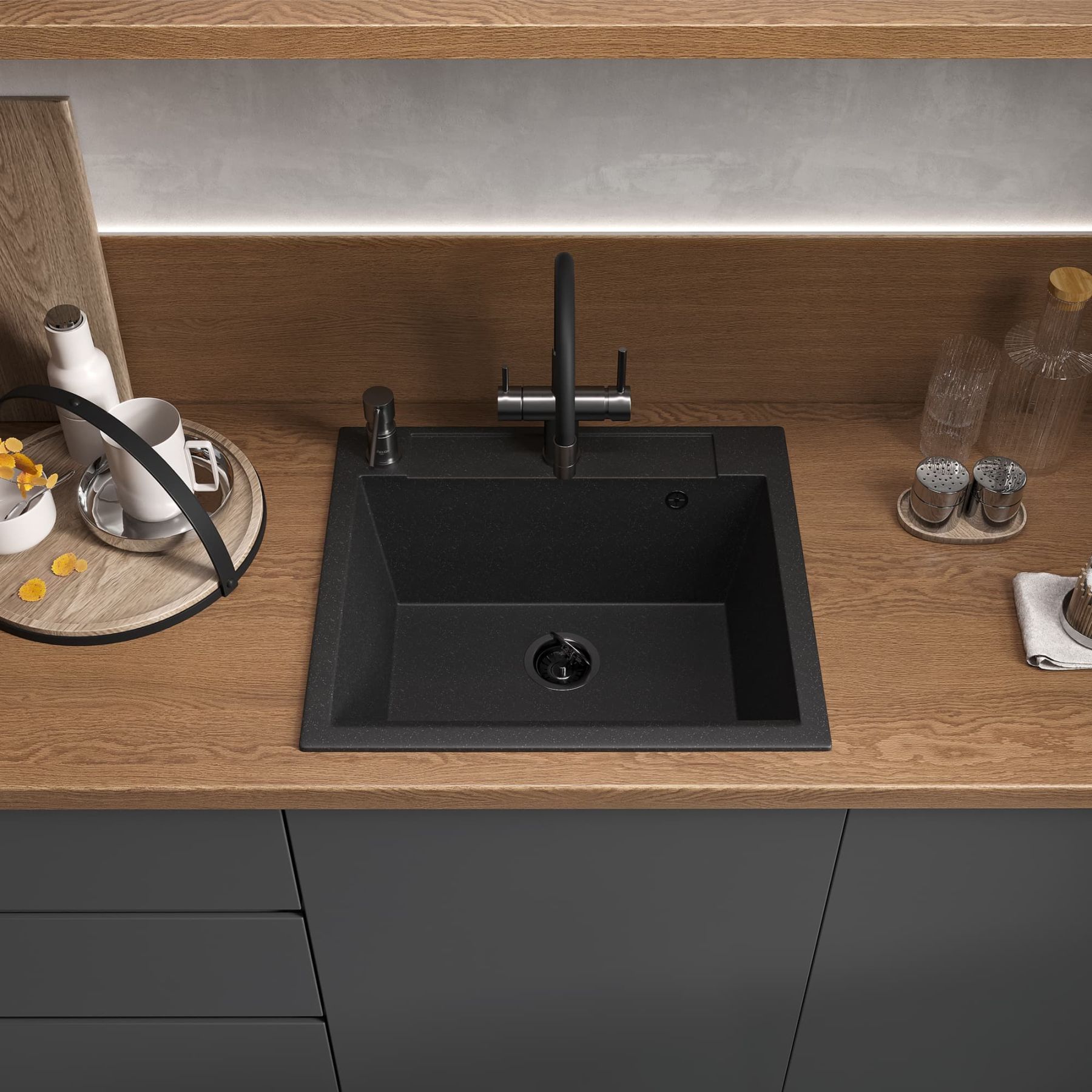 Мойка кухонная Reflexion Cubi 55-CL RX1555CL уголь