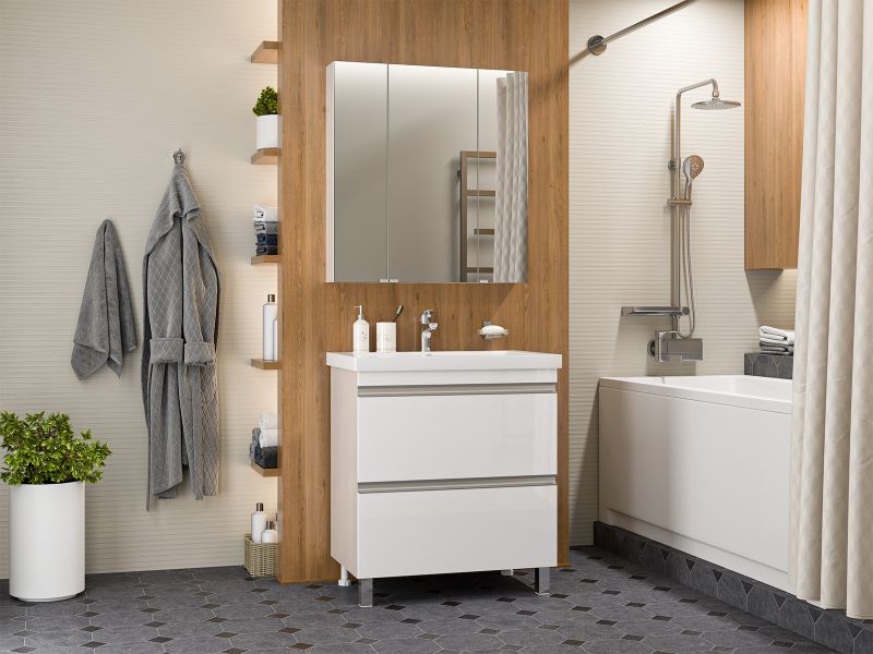 Напольная тумба под раковину – это не просто элемент мебели, но настоящее произведение искусства, которое сочетает в себе функциональность и изысканный дизайн. Изготовленная из высококачественных материалов, она гарантирует долговечность и устойчивость к воздействию влаги.Удобная система хранения позволяет размещать все необходимое для гигиенических процедур, а её продуманные размеры отлично вписываются даже в небольшие помещения. Стильные ручки и элегантные фасады придают тумбе особый шарм, а разнообразие цветовых решений позволит выбрать модель, соответствующую любому интерьеру – от классического до модерн.Мягкие линии и непринужденные формы делают тумбу неотъемлемой частью ванной, превращая её в любимое место для отдыха. Совершенное сочетание эстетики и практичности позволяет создать гармоничный и стильный интерьер, что делает напольную тумбу для ванной комнаты идеальным аксессуаром для любого дома.