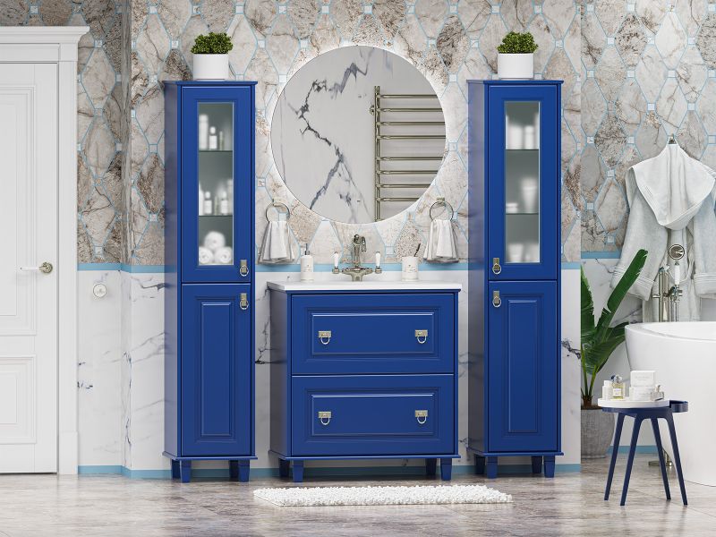 Напольная тумба под раковину Misty Версаль 80см синий купить