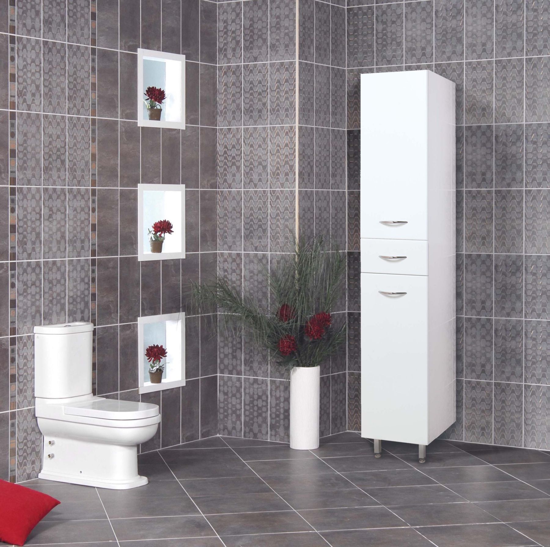 Корпус пенала выполнен из ЛДСП, фасад - из МДФ в пленке, устойчивых к механическим воздействиям, перепадам температур и высокой влажности.