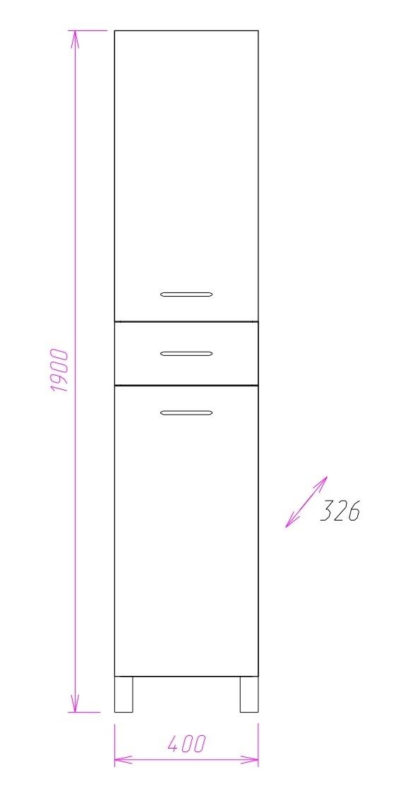 Размер пенала с ножками: 40х33х190 см.