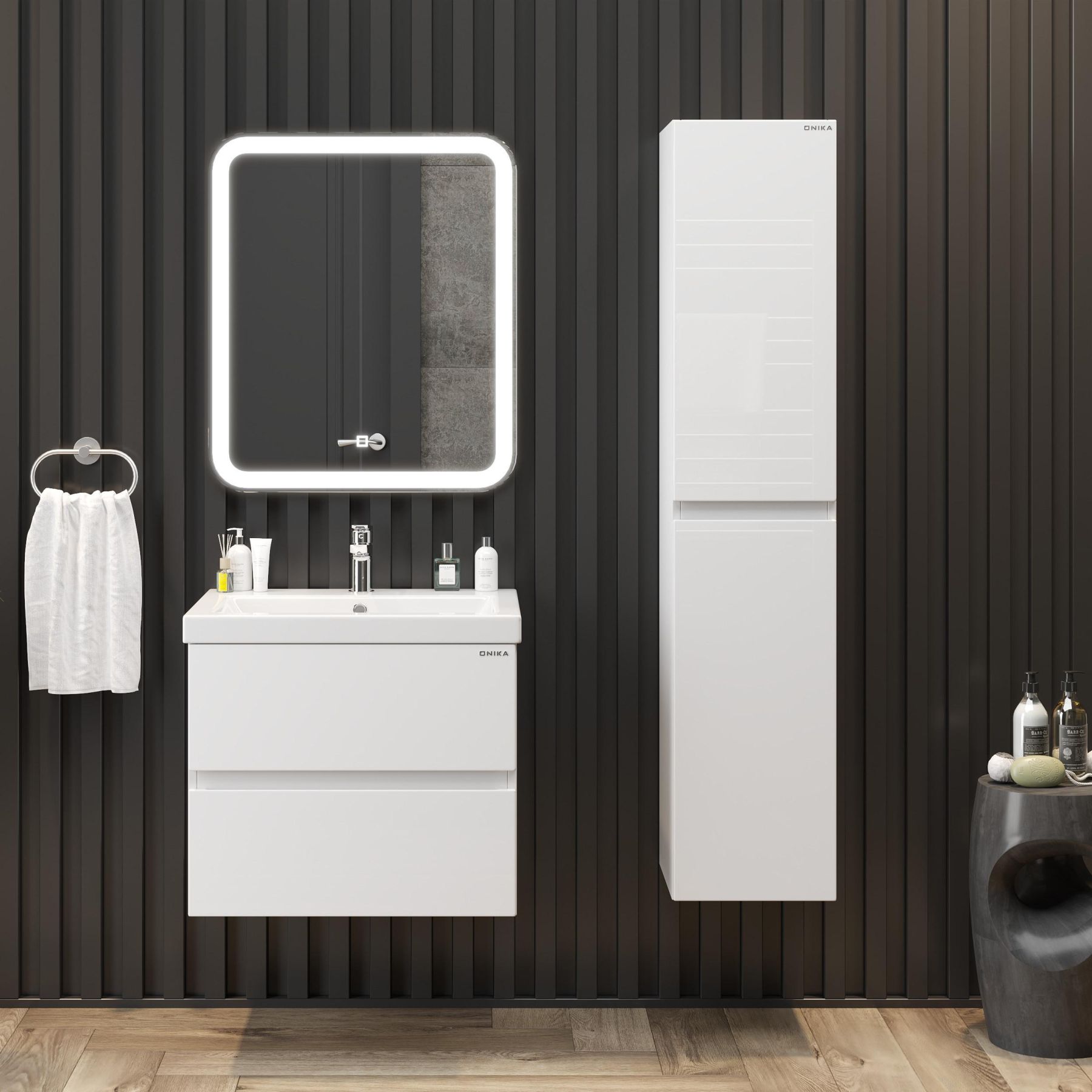 Подвесной шкаф пенал для ванной комнаты Onika Эвада 30 отличается чёткой геометрией форм и создан для тех, кто ценит современный лаконичный дизайн и безупречное исполнение.