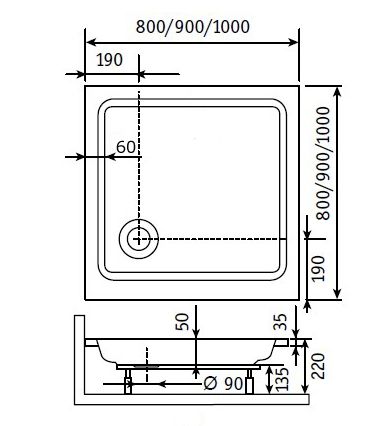 Поддон для душа RGW STYLE KV 800х800х220 купить
