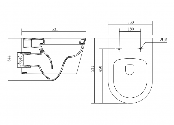 - Укороченный унитаз:нет