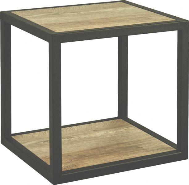 • Открытая навесная полка в цвете дуб эндгрейн выполнена в форме куба и может использоваться как самостоятельный элемент декора и хранения, а также как дополнение к шкафчику из коллекции Лофт Фабрик