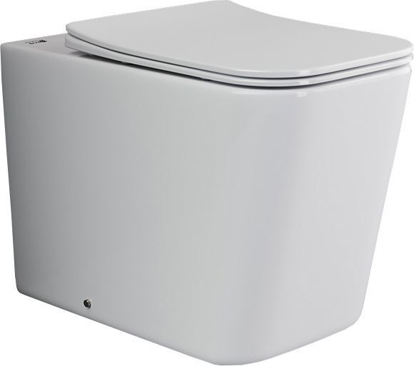 Напольный пристенный унитаз-соло CUBIC Rimless, глубокий смыв, горизонтальный (универсальный) выпуск, с крепежом, ультра тонким сидением с функцией плавного закрытия, дюропласт