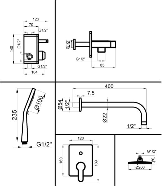 Промо-комплект AZARIO TEVIS AZ-15490721 встраиваемый для душа