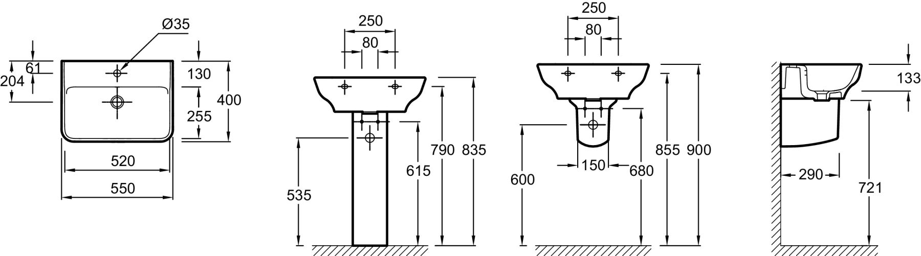 • Отверстия под смеситель:
