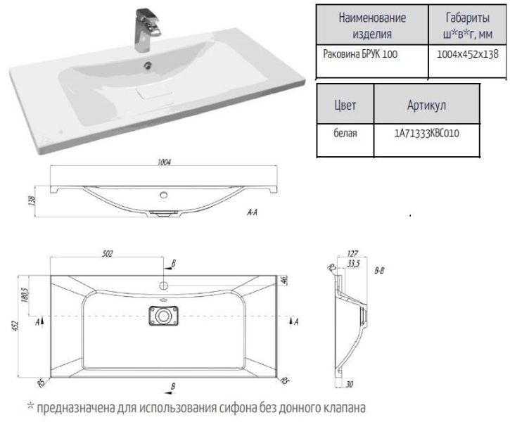 Раковина Акватон Брук 100см 1A71333KBC010 купить