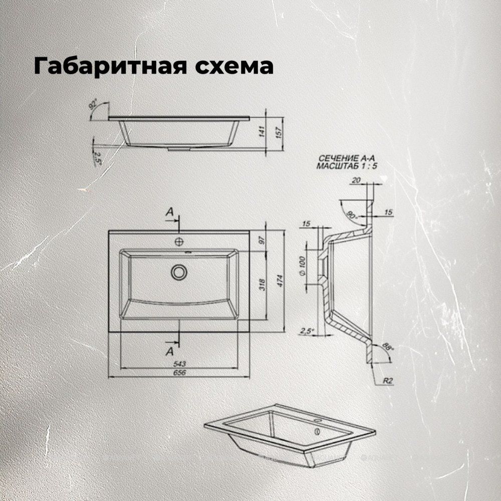 • Прямоугольная форма делает модель универсальной и удобной для большинства интерьеров.