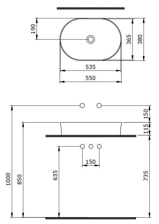 - Отверстия под смеситель:нет