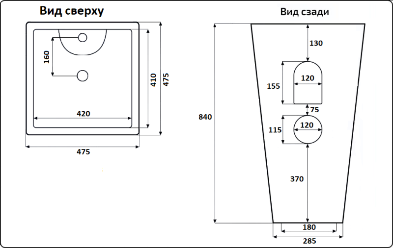• Отверстия под смеситель: