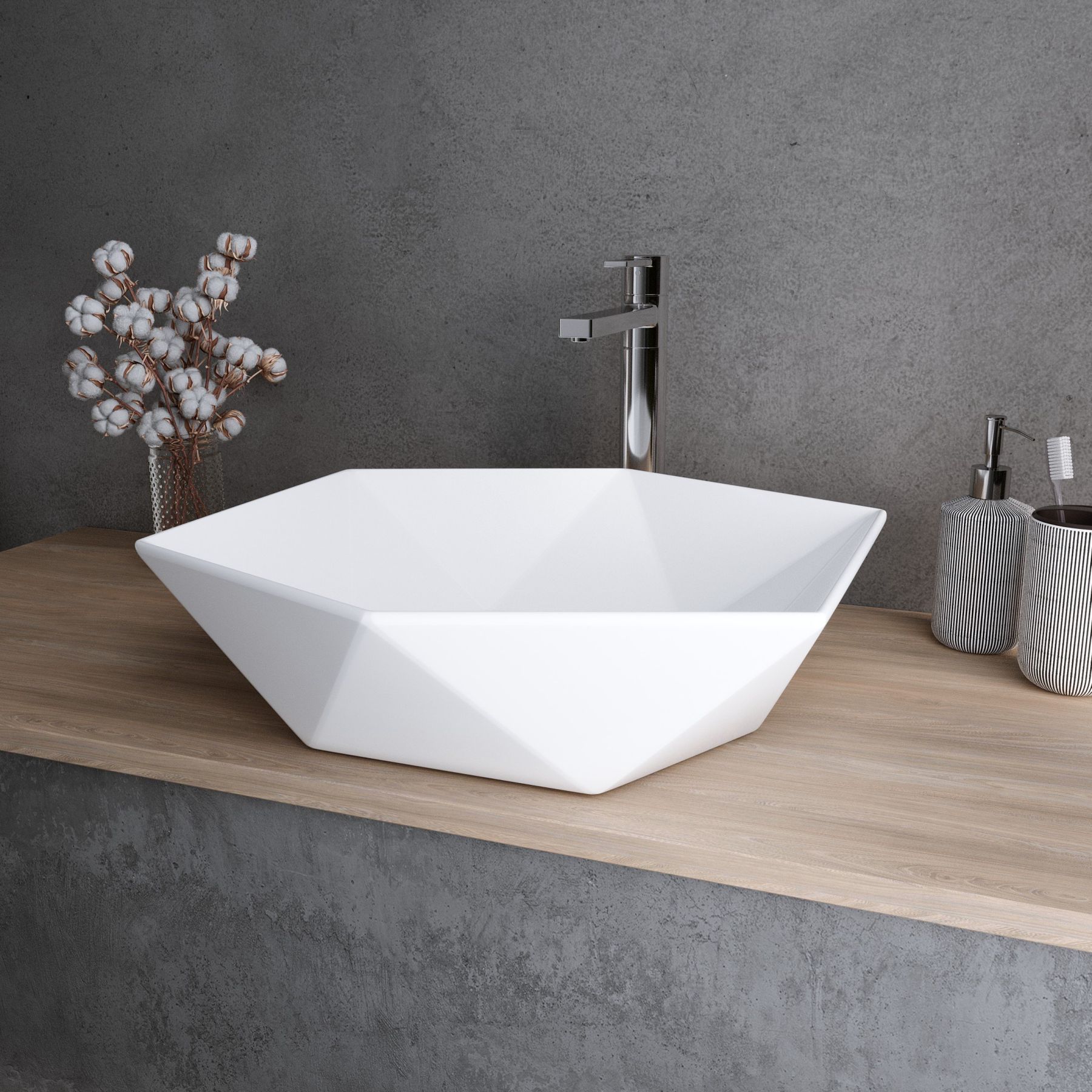 Раковина Grossman самый необходимый сантехнический элемент ванной комнаты, без которого утро будет не полноценным. Накладная раковина поможет сэкономить пространство и разместить под ней другие полезные элементы интерьера. Шестиугольная форма раковины Grossman оптимальных размеров: шириной 46 см, глубиной 46 см, высотой 15 см, способствует комфорту использования и монтажа. Современный стиль, в котором выполнена раковина Grossman передается во всех элементах данной модели. Материалом, из которого произведена раковина является фаянс, данный материал отличается максимально гладкой поверхностью, и абсолютной гигиениченостью.