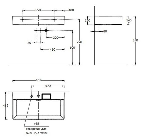 - Отверстия под смеситель:2