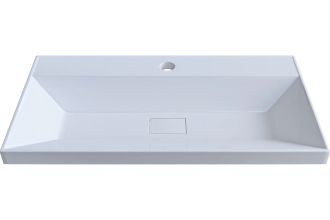 Раковина встраивается на мебель, в столешницу и на подстолье. Верхний слой представляет собой декоративно-защитное покрытие - импортный сантехнический гелькоут. Донный клапан отсутствует. В комплектацию входит декоративная накладка на слив.