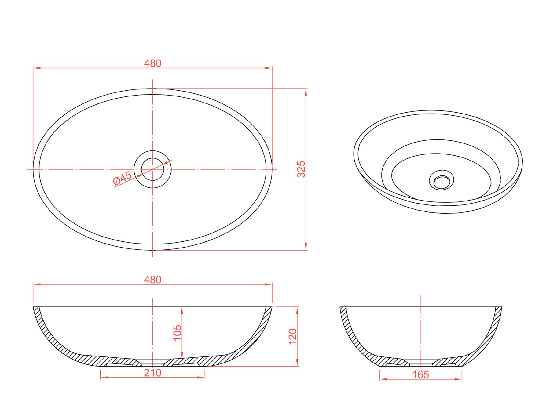 Характеристики и форма накладной раковины Conca 480