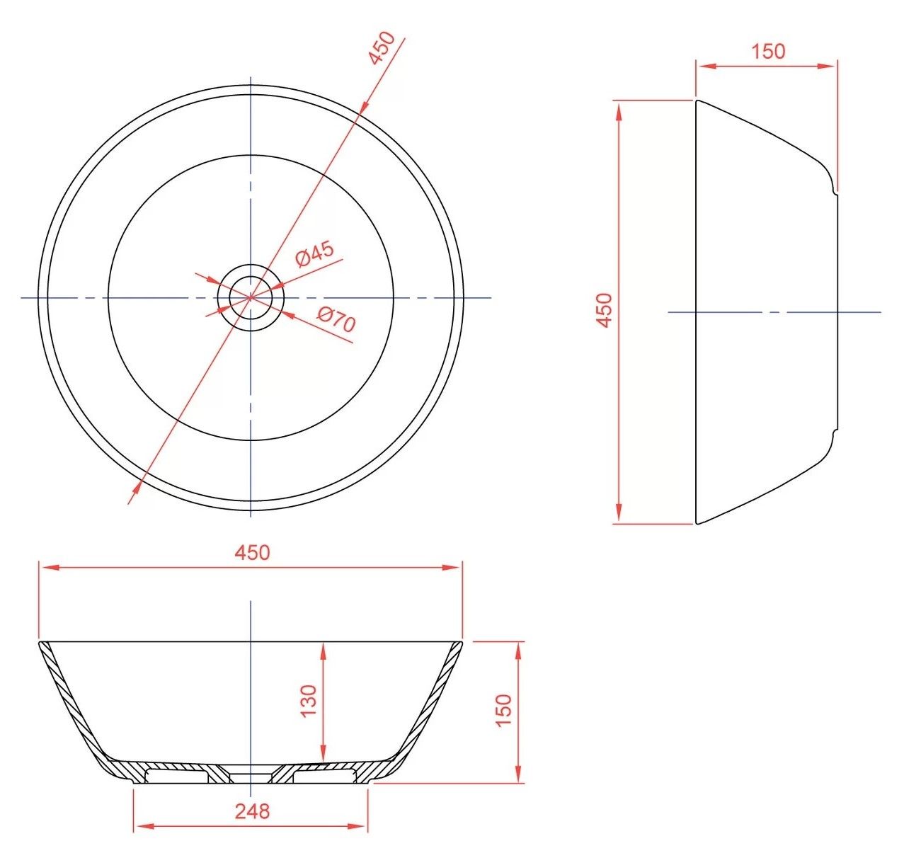 ДxШxВ: 450x450x210 мм