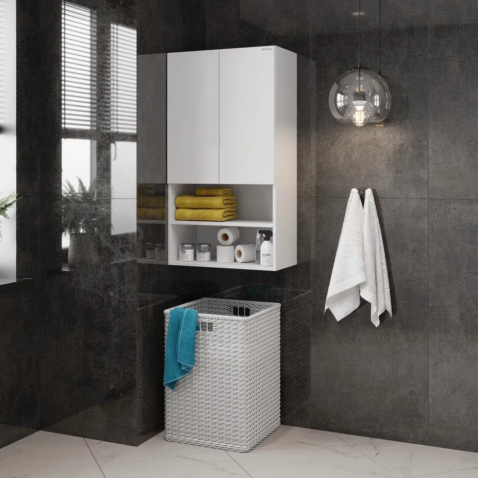 Навесной шкаф для ванной комнаты Onika Маркус 60, благодаря лаконичной прямоугольной форме и универсальному белому цвету, подойдет к любому интерьеру ванной комнаты и не займет много места.