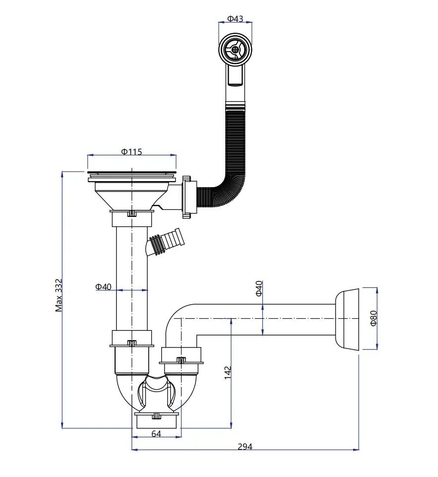Сифон для мойки GranFest 12PB2-P2A черн Подробнее