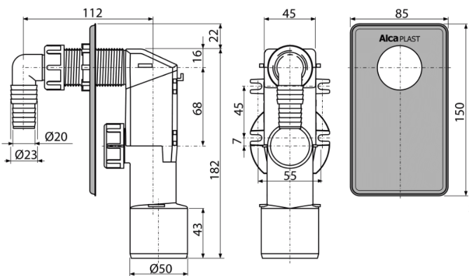 Сифон для стиральной машины AlcaPlast под штукатурку хром APS3 купить