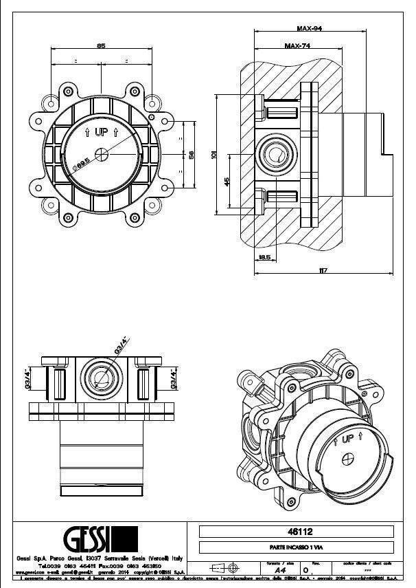 Скрытая часть смесителя для раковины Gessi 46112.031