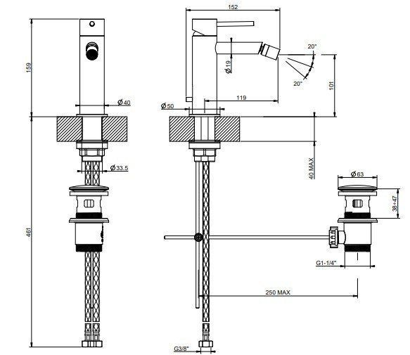 Gessi Flessa смеситель для биде однорычажный, донный клапан, соединительные шланги, цвет Brass Brushed PVD.