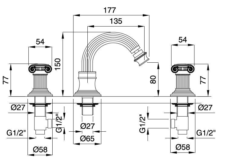 Смеситель для биде на 3 отверстия Cezares OLIMP-BBS2-01-O